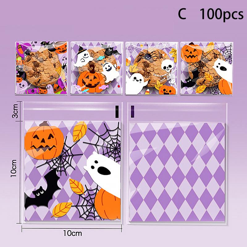 100 шт. 4-в-1 упаковка для конфет на Хэллоуин, самозапечатывающийся пакет для подарка на вечеринку в честь фестиваля призраков, сумка для закусок и сладостей