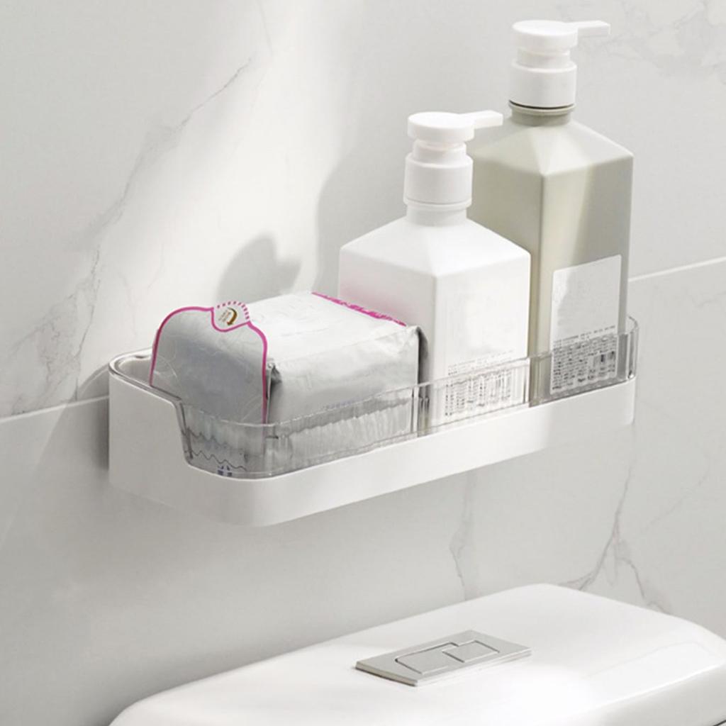 Гель для душа в ванной, косметика и стойка для хранения разных вещей