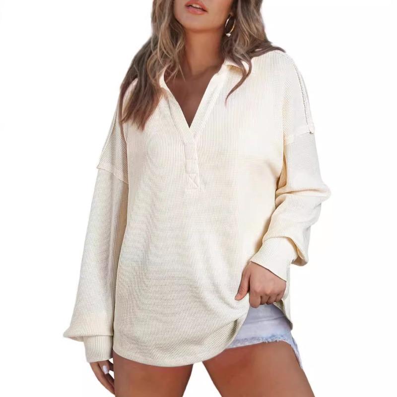 Осенне-зимний женский свободный пуловер с V-образным вырезом, трикотажный свитшот