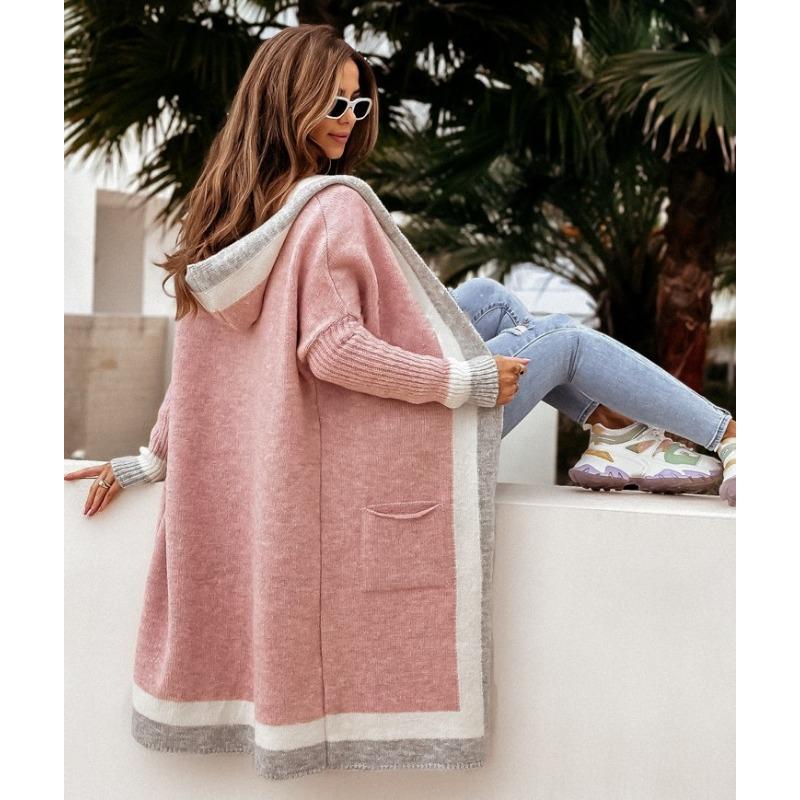 Женский осенне-зимний повседневный длинный свитер с капюшоном