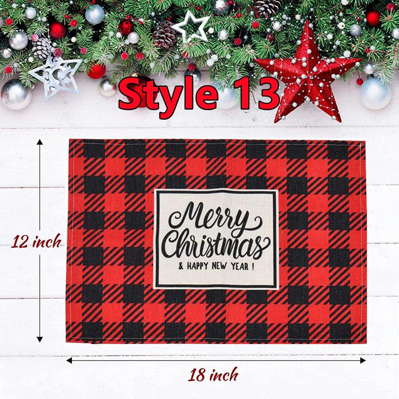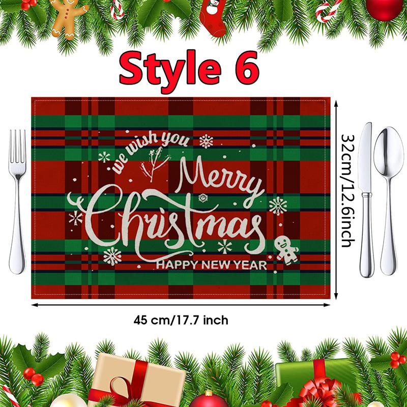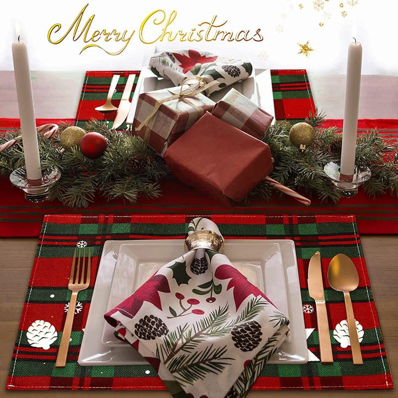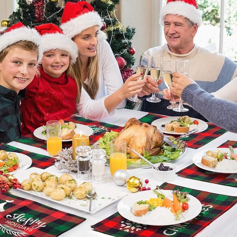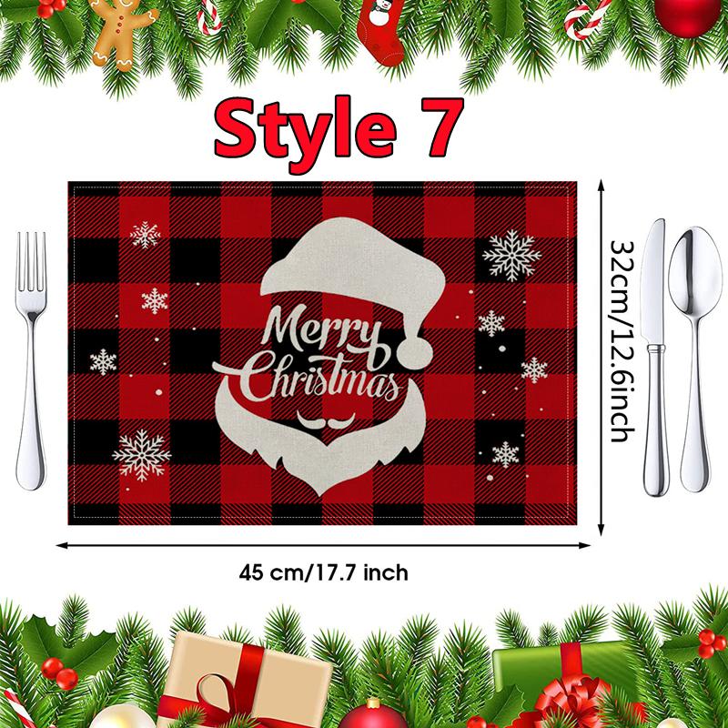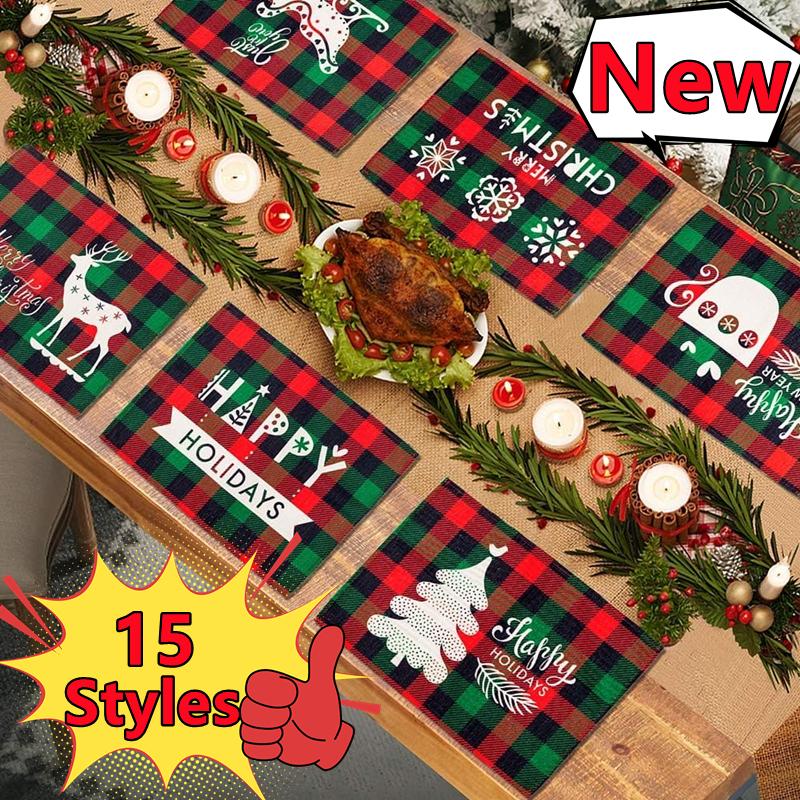 New Christmas Placemats Red Green Plaid Placemats Reversible Heat-Resistant Santa Claus Place mat for Xmas Home Decoration Gifts
