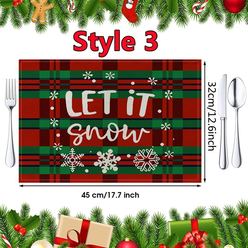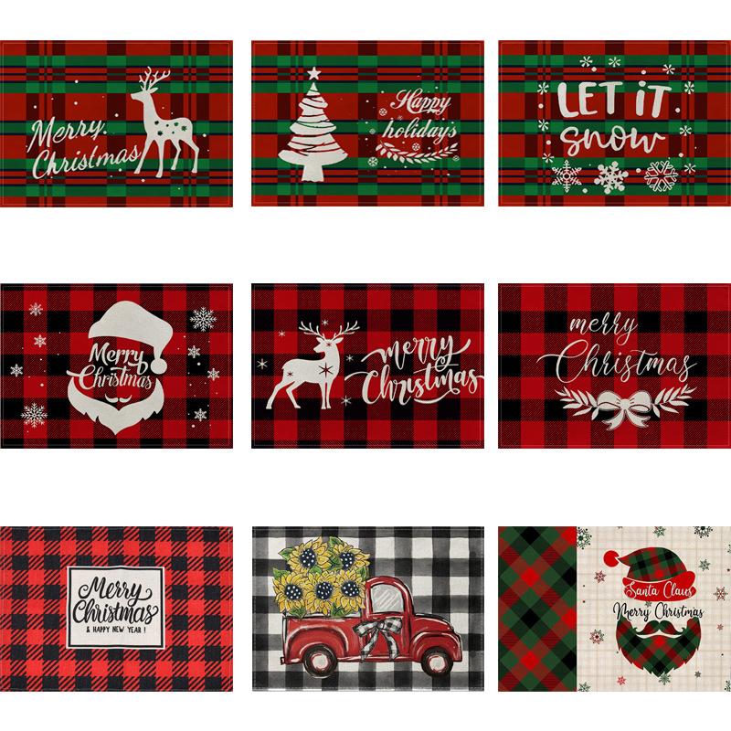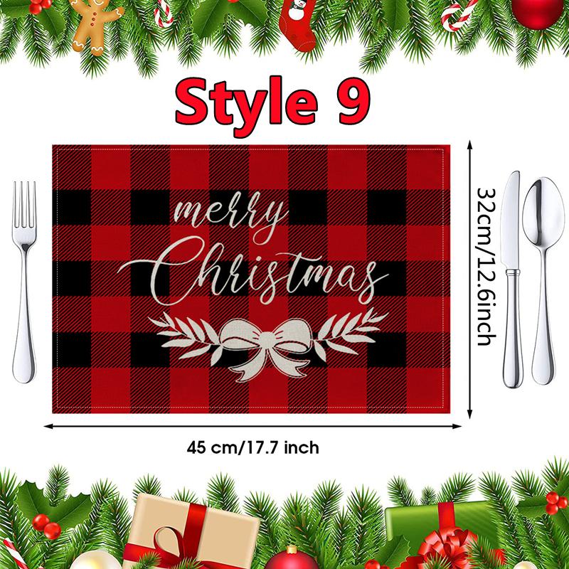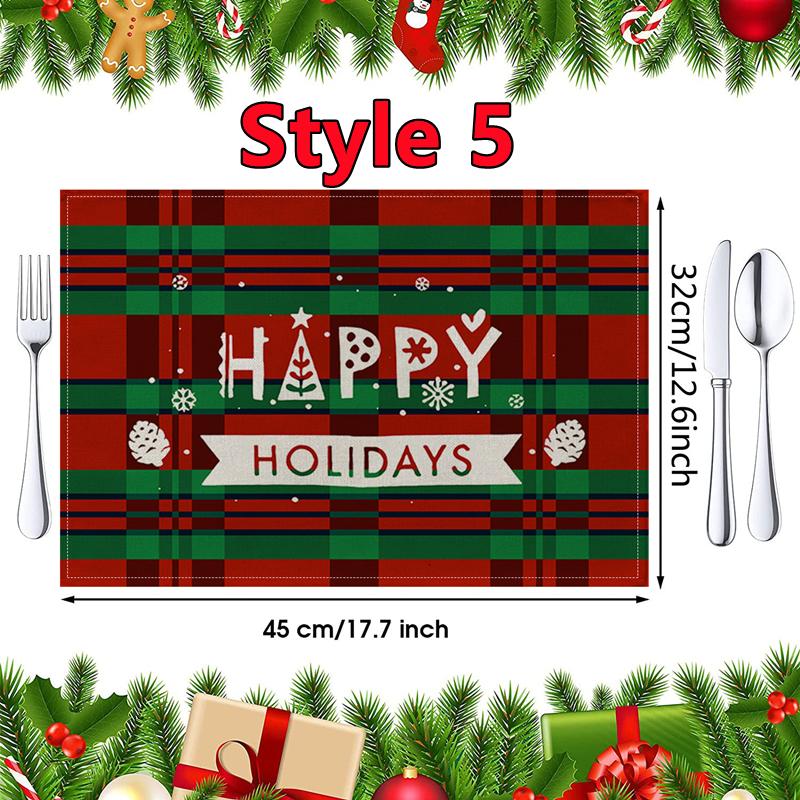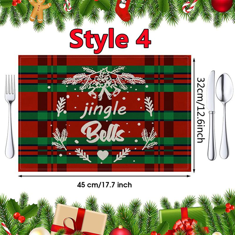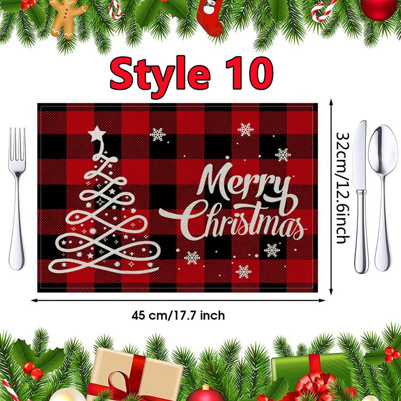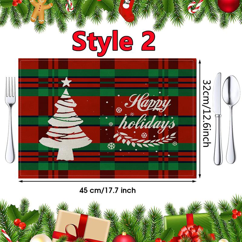 New Christmas Placemats Red Green Plaid Placemats Reversible Heat-Resistant Santa Claus Place mat for Xmas Home Decoration Gifts