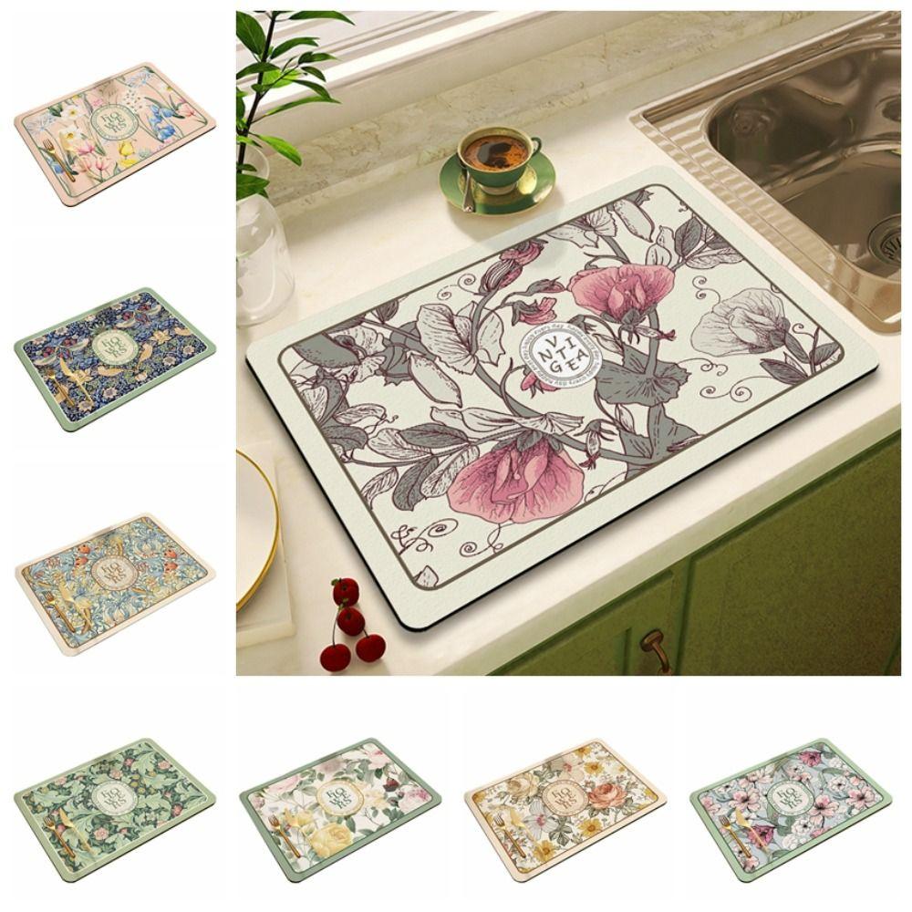Коврик для сушки с цветочным принтом, нескользящий коврик для сушки посуды, коврик для сушки посуды, кухонный
