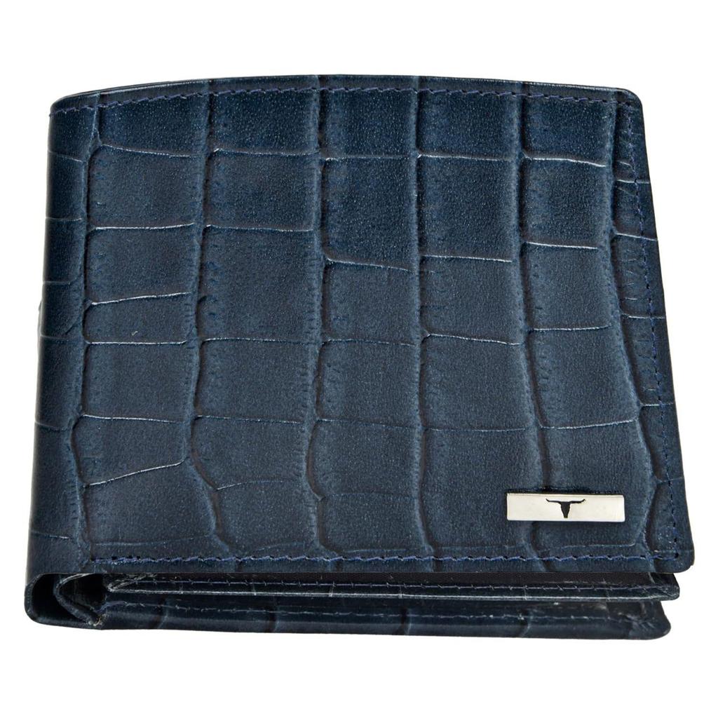 Мужской кожаный кошелек с принтом Карла синего цвета