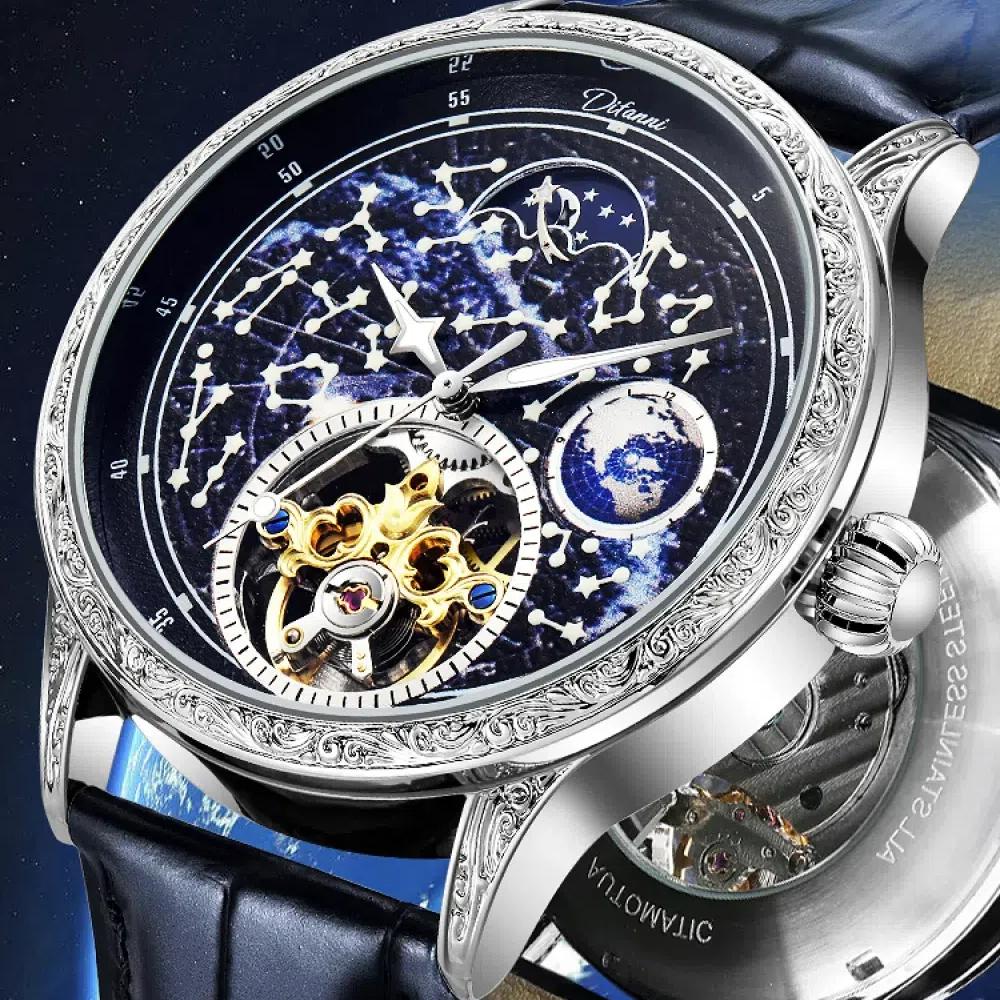 Dulunwe Механические часы Brilliant Starry Sky Luminous Tourbillon, уникальные мужские наручные часы Hollow Skeleton с автоматическим механизмом
