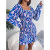 Женское платье осень/зима с квадратным воротником и длинными рукавами, оборками и запахом на бедрах — купить товар онлайн с бесплатной доставкой по всему миру!