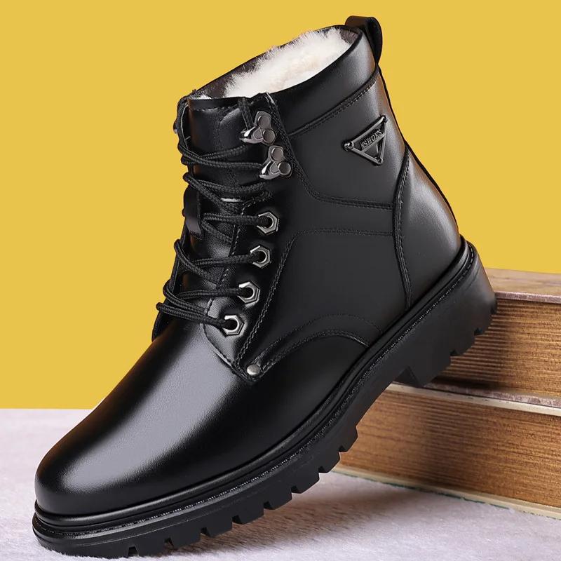 Модные зимние ботинки на платформе из коровьей кожи для мужчин Новые дизайнерские теплые хлопковые ботинки на мягкой подошве для мужчин Модные повседневные ботильоны Мужские