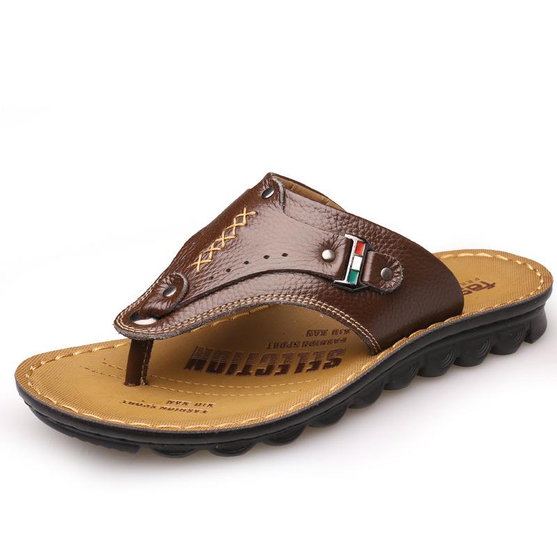 Fashion Men's Sandals 2024 Summer New Fashion Casual Cowhide Slippers for Men Outdoor Beach Flip-flops Zapatos De Hombre Shoes Male