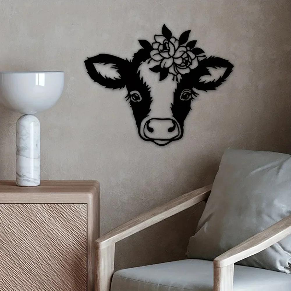 1 шт. Милая корова, металлическое настенное искусство – забавное украшение в виде животного для дома, идеально подходит для детской комнаты или детского сада, в комплект входят наклейки