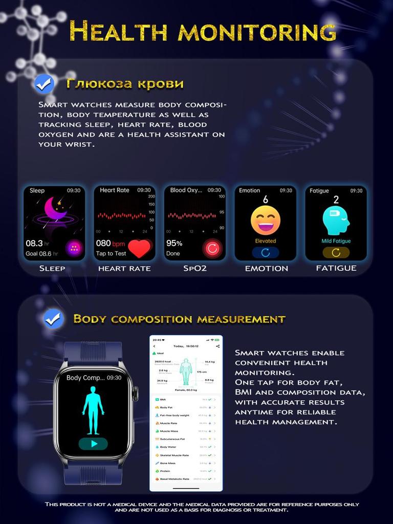 ▶Другие функции: интеллектуальный голосовой помощник, звонки по Bluetooth, голосовое оповещение о давлении, ультратонкая комфортная воздушная подушка из ТПУ (съемный), Контроль доступа по NFC, функция экстренного вызова SOS, состав тела (BMI), Функция ЭКГ, мониторинг кислорода в крови, мониторинг артериального давления, дыхательные упражнения, женское здоровье, мониторинг сердечного ритма, мониторинг температуры тела, напоминание о сидячем образе жизни и другие функции управления здоровьем, удаленный уход за семьей и друзьями, фонарик, подсчет шагов/калорий/расстояния, мультиспортивный режим, будильник, функция отображения на экране, переключение циферблатов в магазине приложений, настраиваемый основной циферблат, напоминание о звонках и сообщениях, прогноз погоды, игры, воспроизведение и управление музыкой.