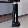 Женские сапоги выше колена на высоком каблуке, осенне-зимние, новые, на платформе, из искусственной кожи, высокие сапоги, женские, с пряжкой, черные, длинные, Botas