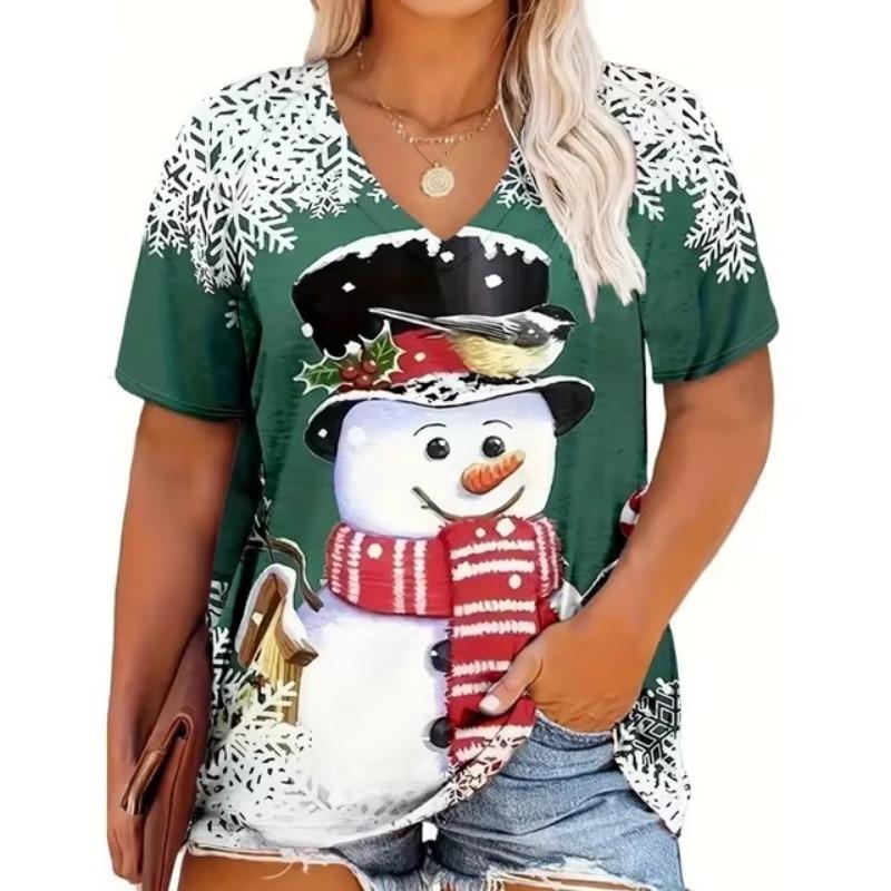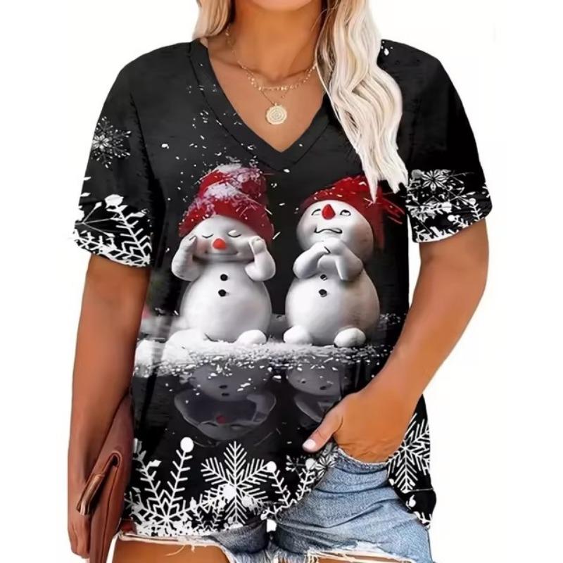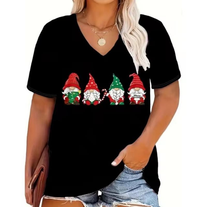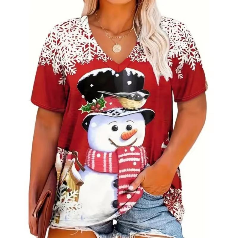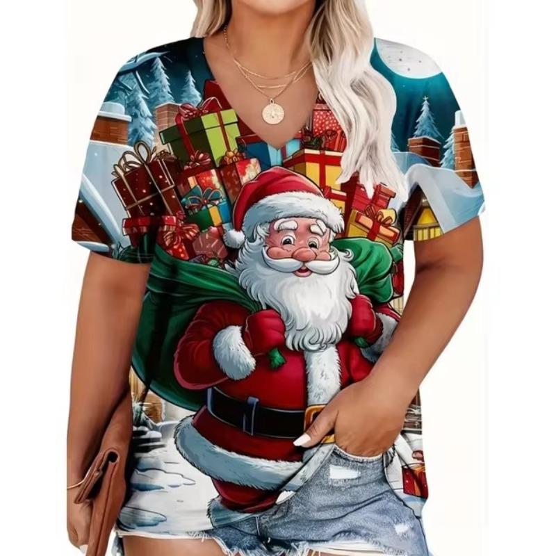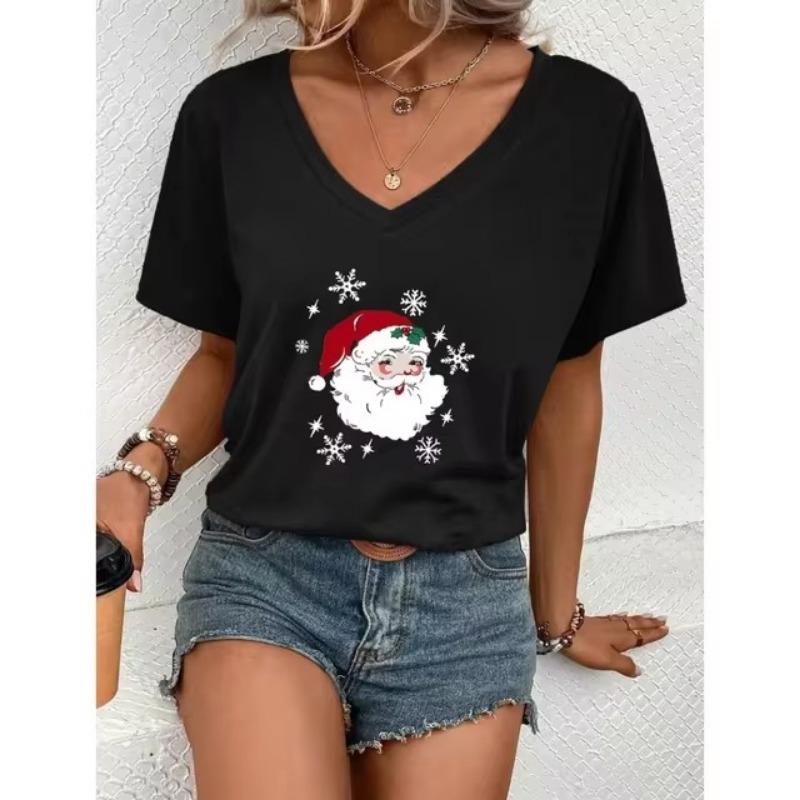 Модная красная рождественская женская одежда, летняя футболка с V-образным вырезом, свободная футболка с короткими рукавами, футболка с изображением Деда Мороза, тренд, популярные стили