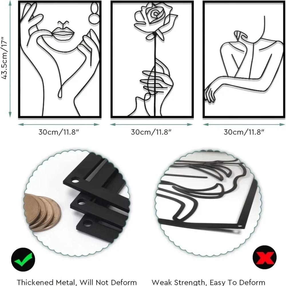 Утолщенная современная металлическая линия искусства - простой силуэт женского тела абстрактная настенная скульптура для домашнего подвесного декора