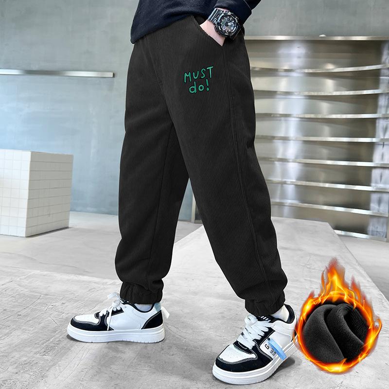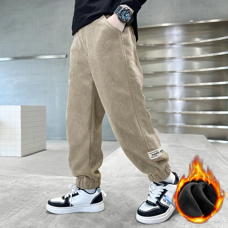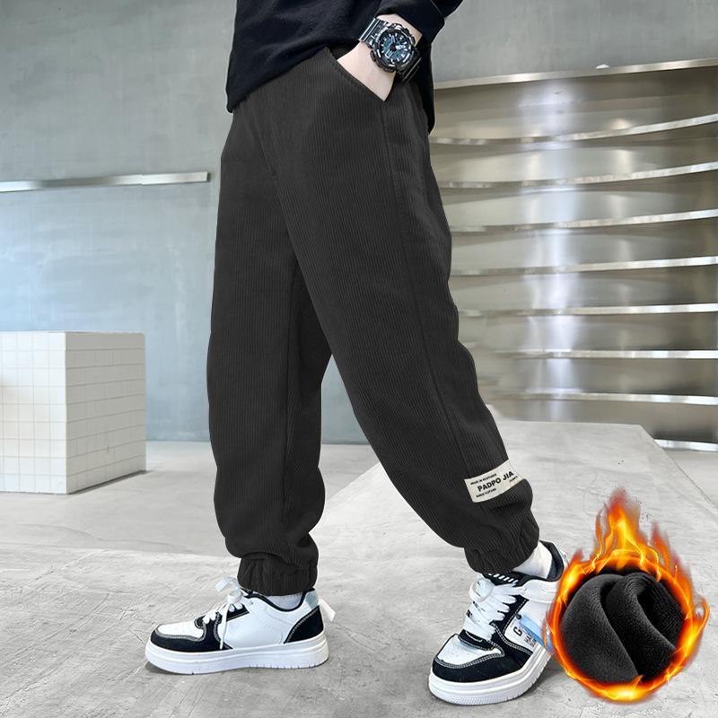 Зимние теплые детские брюки на меховой подкладке из вельвета и флиса для мальчиков от 4 до 14 лет Верхняя одежда Повседневные спортивные брюки Брюки-джоггеры