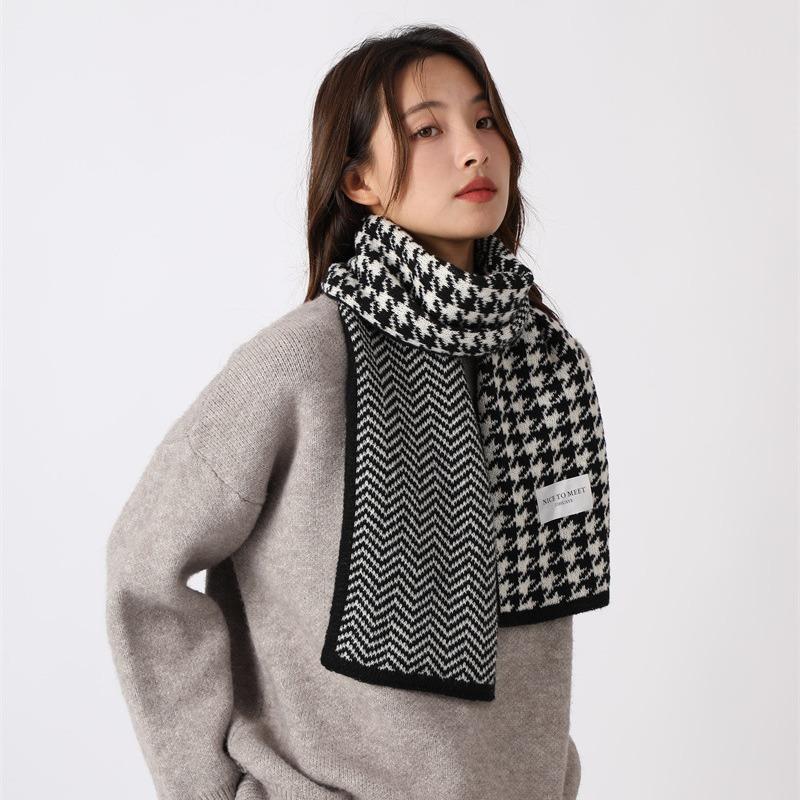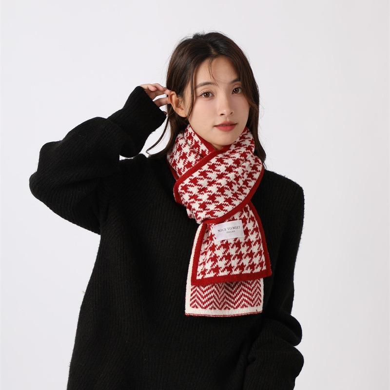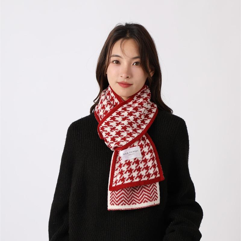 Новогодний красный шарф женский зимний новый стиль корейский выпуск атмосфера двухсторонний студенческий милый теплый толстый вязаный подарок