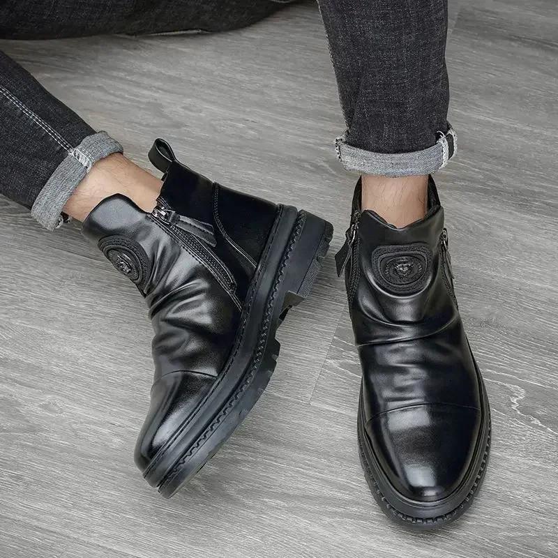 Модные зимние мужские ботинки на молнии, черные, размер 44, удобные, высокого качества, модные, 2025, акция, горячее предложение