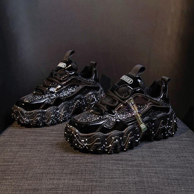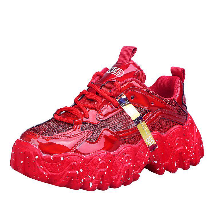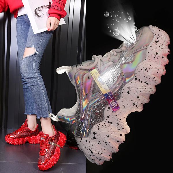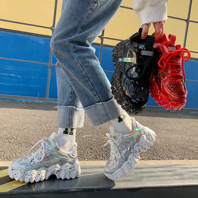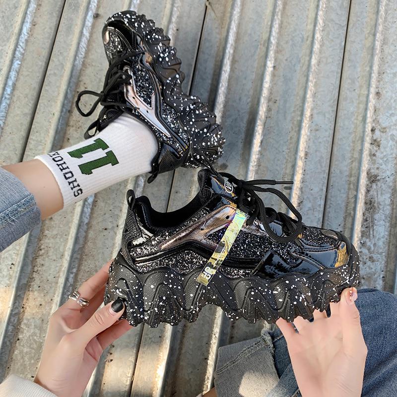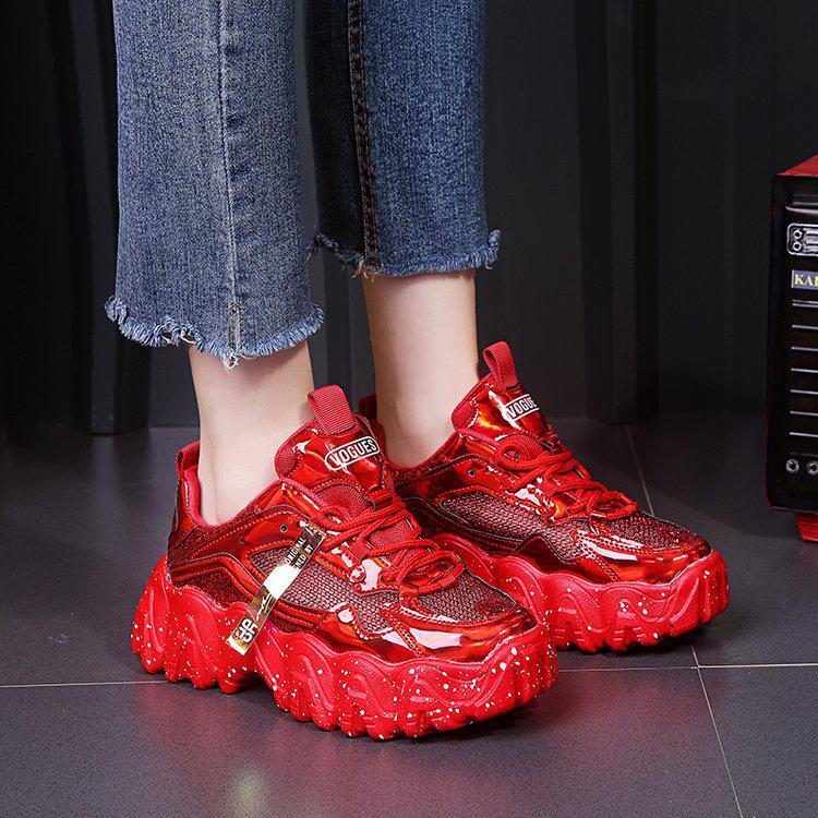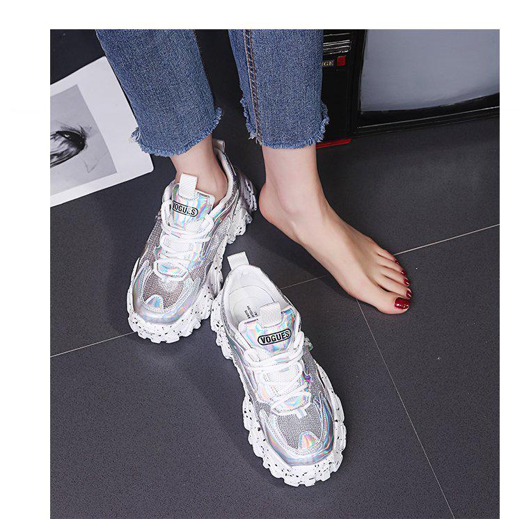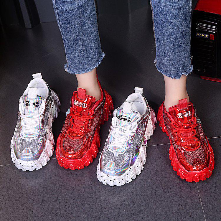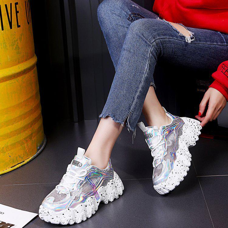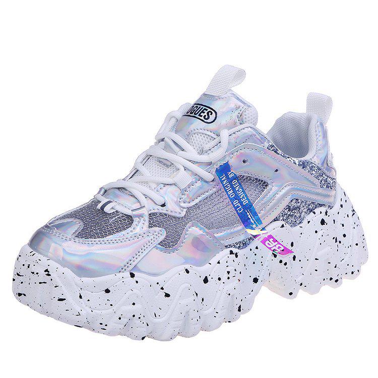 Кроссовки женские весна 2021 мода блестящая ткань блестящие дышащие круглый носок досуг массивные женские туфли