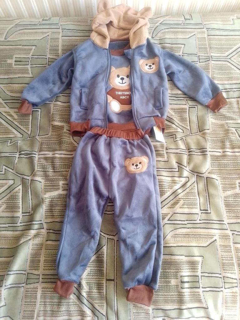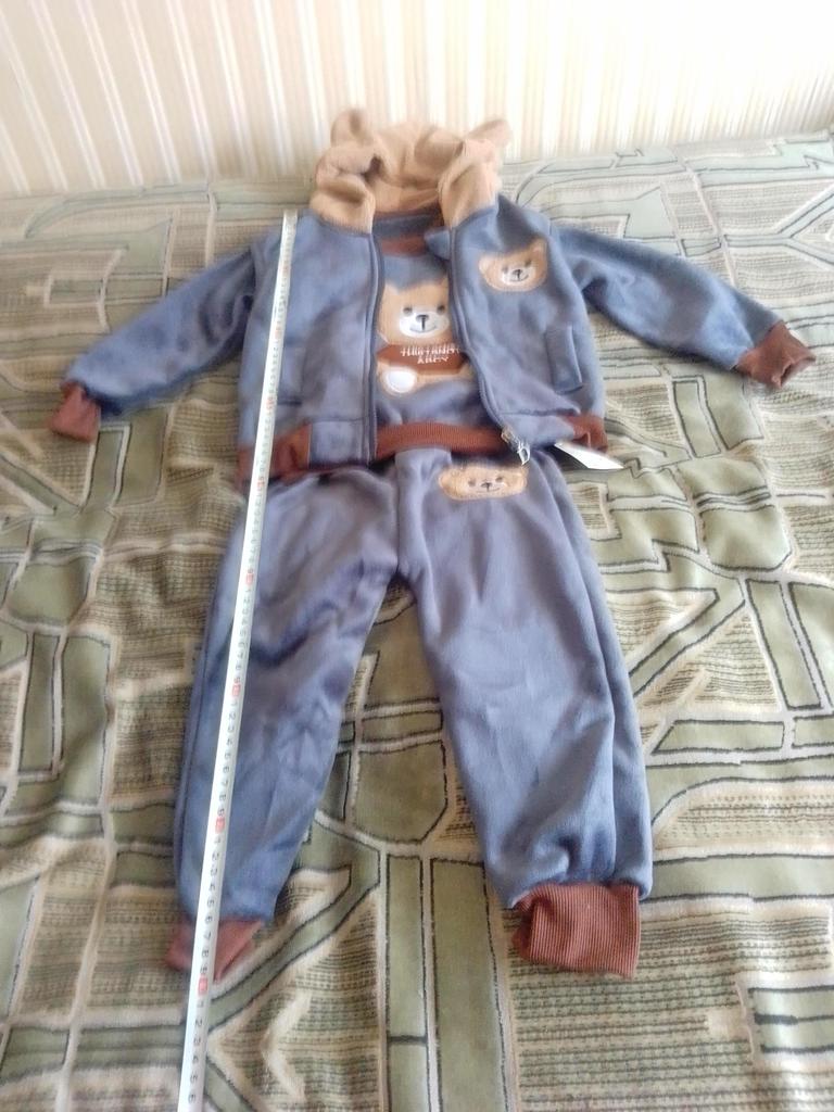 Костюмчик очень понравился.Размер скорее на пол годика.Трикотаж.Запаха нет,нитки не торчат,все как на фото.Шёл месяц.Продавцу спасибо)