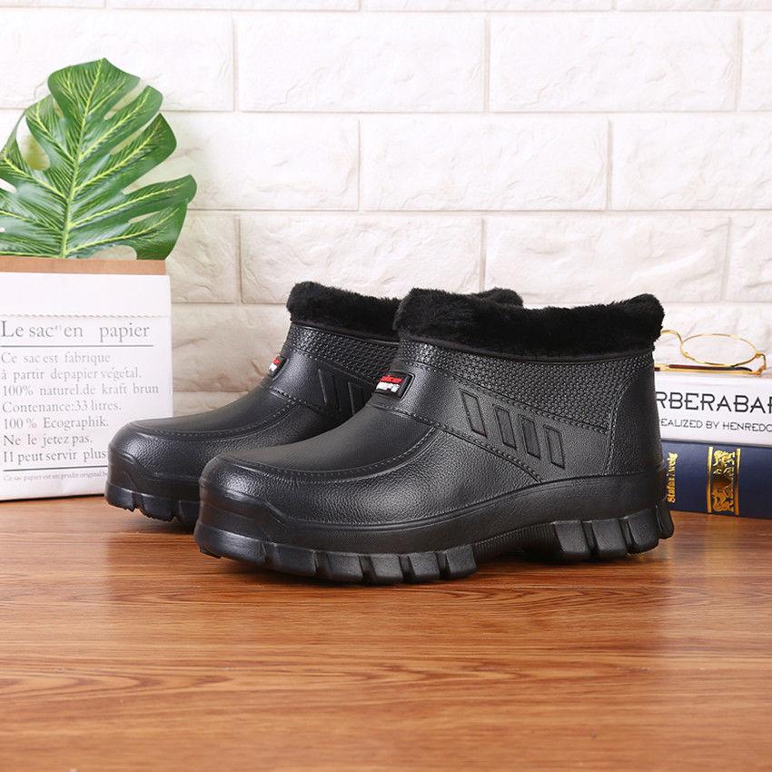 Модные водонепроницаемые и кашемировые зимние ботинки для мужчин и женщин, для стирки, кухни, гигиены, работы, теплая обувь из ЭВА из хлопка, устойчивая к дождю и грязи.