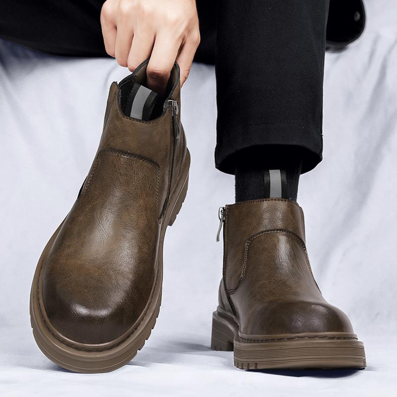 Модные осенние и зимние мужские ботинки Модный уличный стиль Для отдыха на природе Для деловых вечеринок Для офиса Мотоциклетные мужские кожаные ботинки