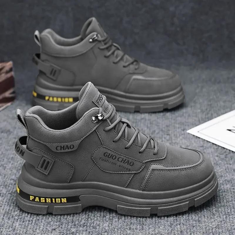 Модные зимние мужские ботинки 2024 Новые плюшевые трендовые теплые хлопковые ботинки с высоким верхом Ботинки карго Короткие ботинки На шнуровке Платформа Снежные ботинки Кроссовки