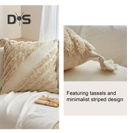 Этот чехол для подушки с бахромой и минималистичным полосатым дизайном легко дополнит различные стили домашнего декора, добавив яркости и элегантности любой комнате..