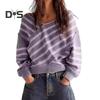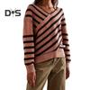 Украсьте свой гардероб этим женским полосатым свитером.. Этот свободный свитер с V-образным вырезом и длинными рукавами дополнен отделкой из рубчатой вязки и рельефными швами, что придает ему стильный вид..