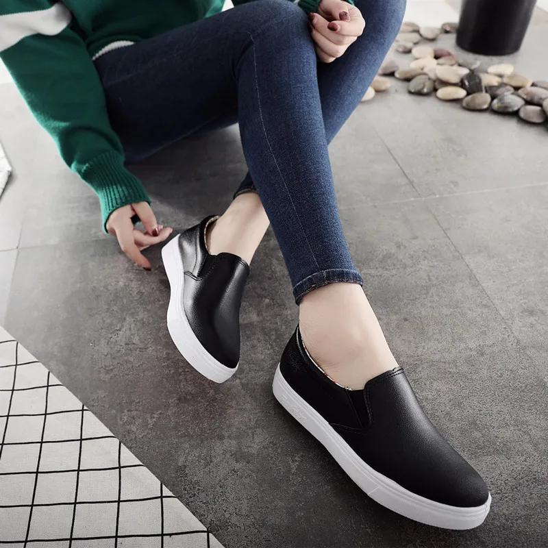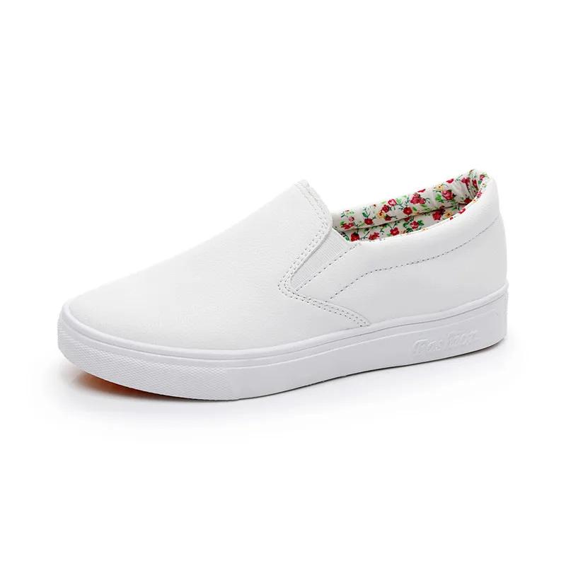 Модные летние кожаные белые туфли без застежек для женщин, лоферы в корейском стиле, женские повседневные кроссовки на плоской подошве для беременных женщин