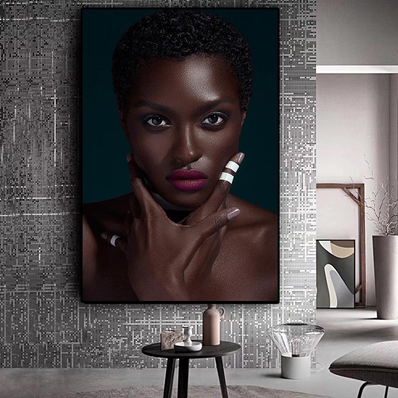 Черная африканская обнаженная женщина с красной помадой, картина маслом на холсте, постеры и принты, настенная картина Cuadros для декора гостиной