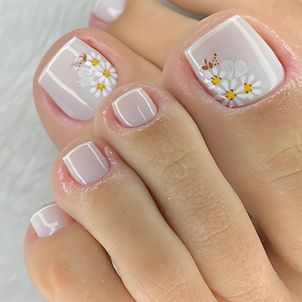 24 шт. коротких квадратных глянцевых фиолетовых накладок для ногтей с цветочным узором - модные французские цветочные формы для ногтей на ногах с глянцевым покрытием