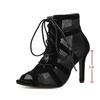 Сексуальные сандалии на высоком каблуке с открытой сеткой, женские летние босоножки на каблуке с перекрестной завязкой и открытым носком, танцевальная обувь с ремешком на щиколотке, черные сандалии из сетчатой ткани