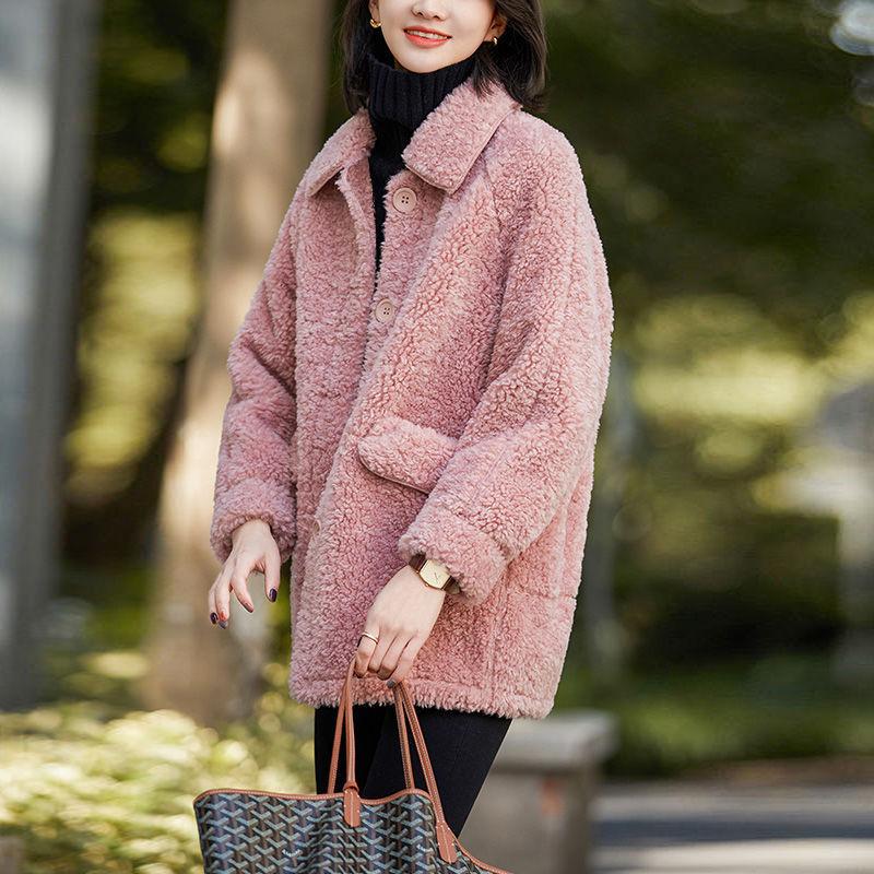 Куртка женская осень и зима новая корейская версия бархата утолщенная средней длины искусственная овечья шерсть лацкан свободная хлопковая куртка блузка