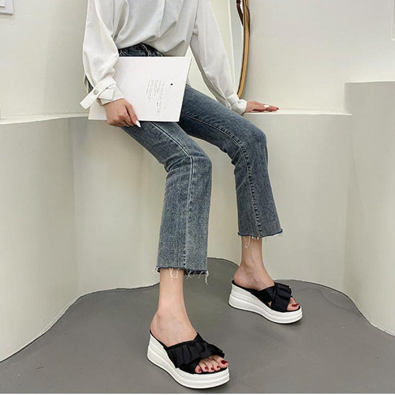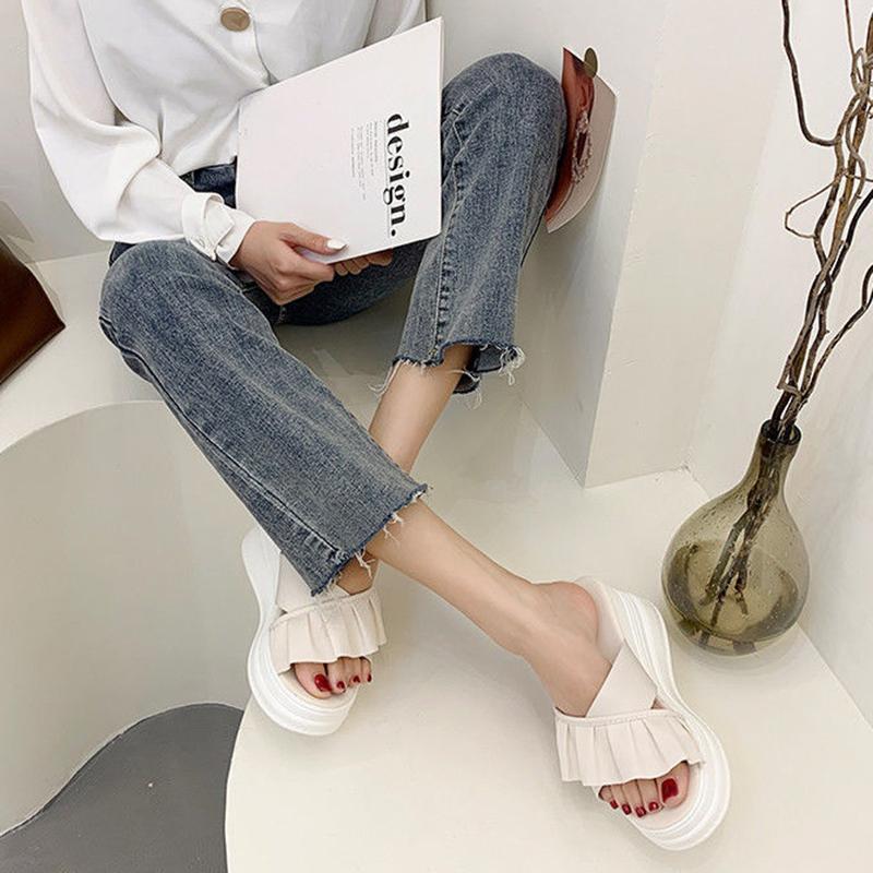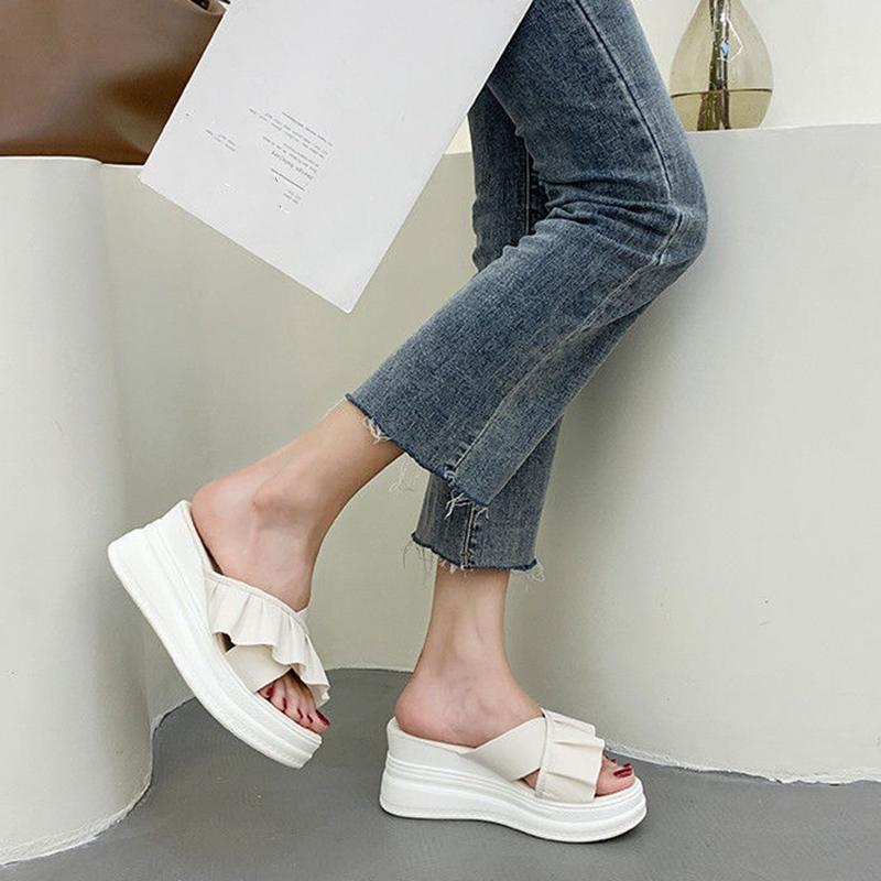 2024 Летние женские тапочки на толстой подошве, модные повседневные пляжные сандалии с открытым носком, повседневные тапочки высотой 6 см, размер 35-39