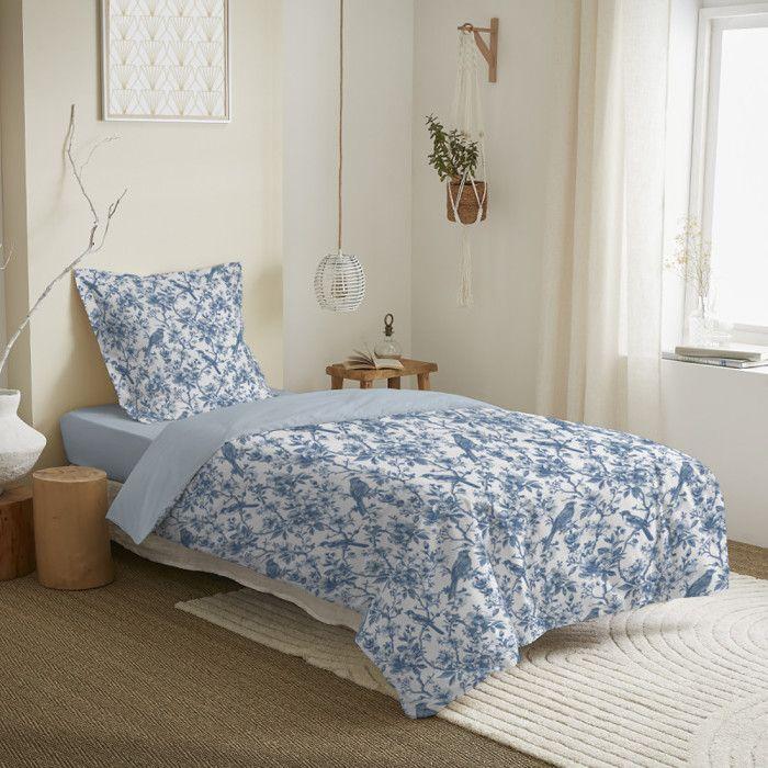 Parure de couette réversible pour lit 90 x 190 cm Bérengère bleu