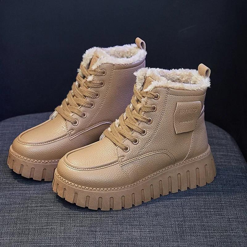 Зимние женские теплые короткие плюшевые хлопковые туфли, модные туфли на платформе со шнуровкой для женщин, повседневные ботильоны, высокие кроссовки