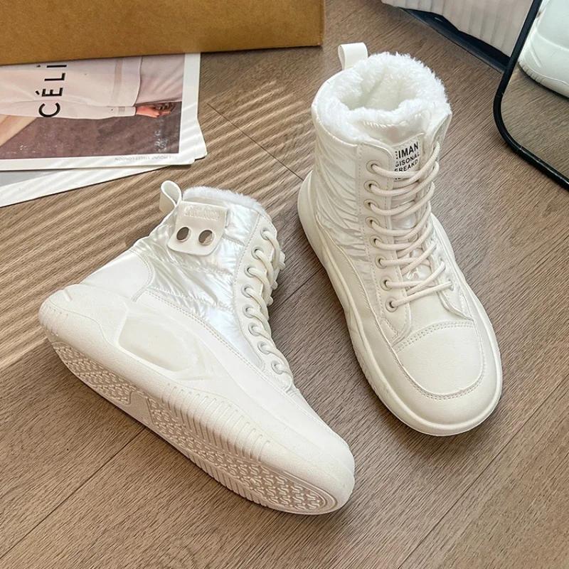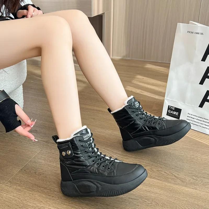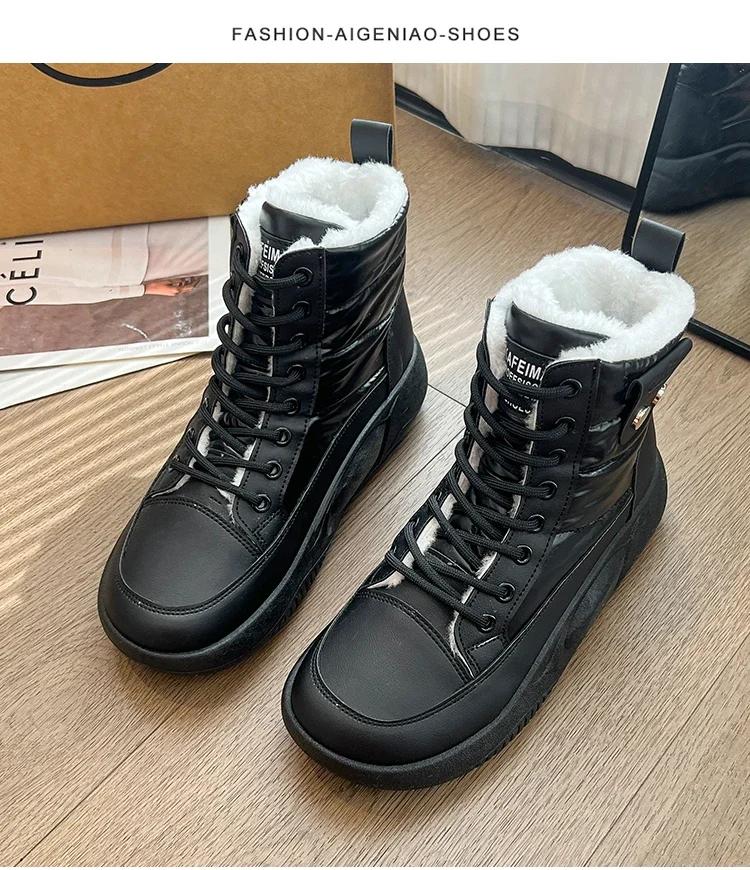 Зимние кроссовки, новые женские туфли на платформе 2024 года, модные со шнуровкой, сохраняющие тепло, короткие плюшевые ботильоны для женщин, повседневная хлопковая обувь