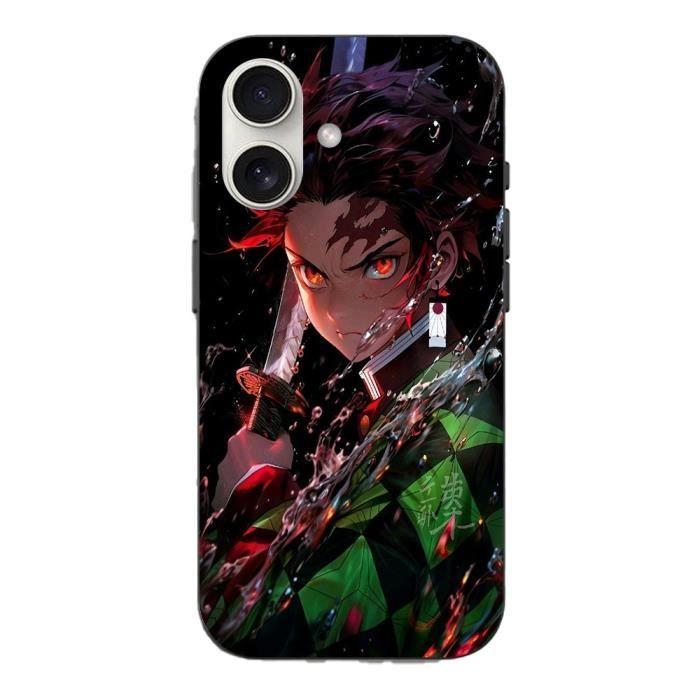 Coque Iphone 16 - Demon Slayer - Tanjiro Kamado - Souple - Noir - Manga Anime