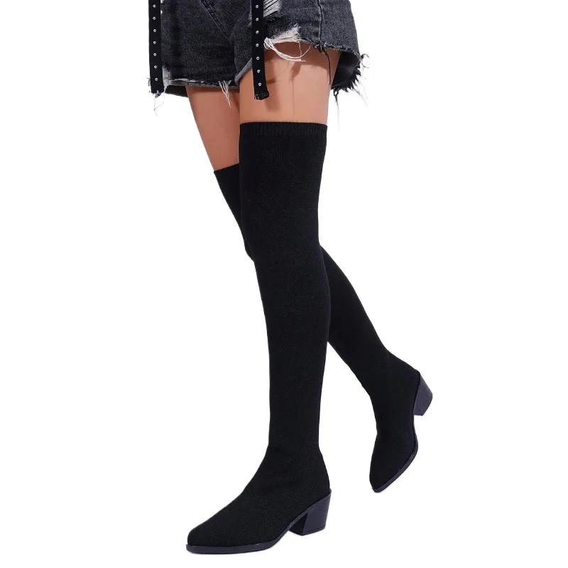 Женская обувь 2024 года, женские сапоги без застежек, модные, из эластичной ткани, современные сапоги, женские, сексуальные, с острым носком, выше колена, больших размеров