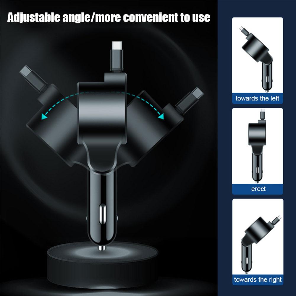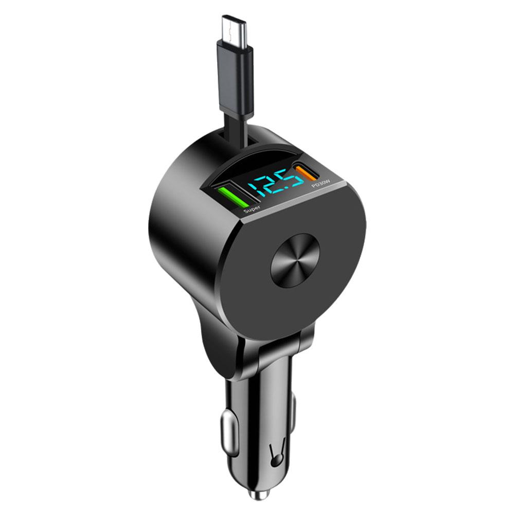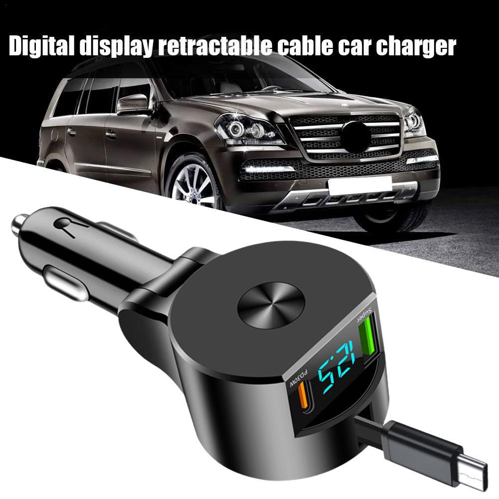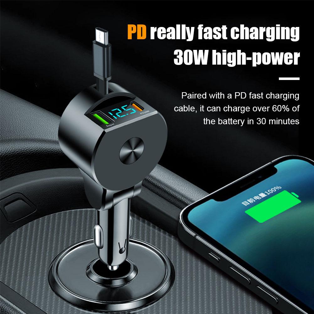 Цифровой дисплей Втягивающийся кабель Автомобильный зарядный адаптер 3 в 1 PD30W Быстрая зарядка Регулируемый угол Type-c Автомобильная электроника