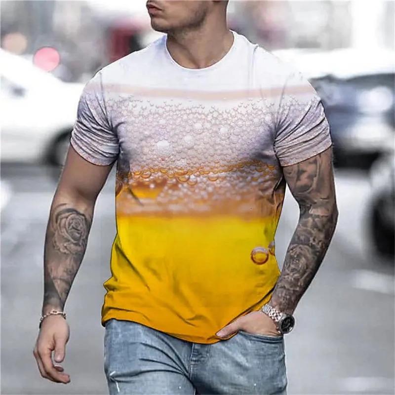 Мужская футболка с принтом пива 3D, мужская забавная мужская рубашка, повседневная летняя уличная одежда, нейтральная футболка, топ для мужчин, большие размеры