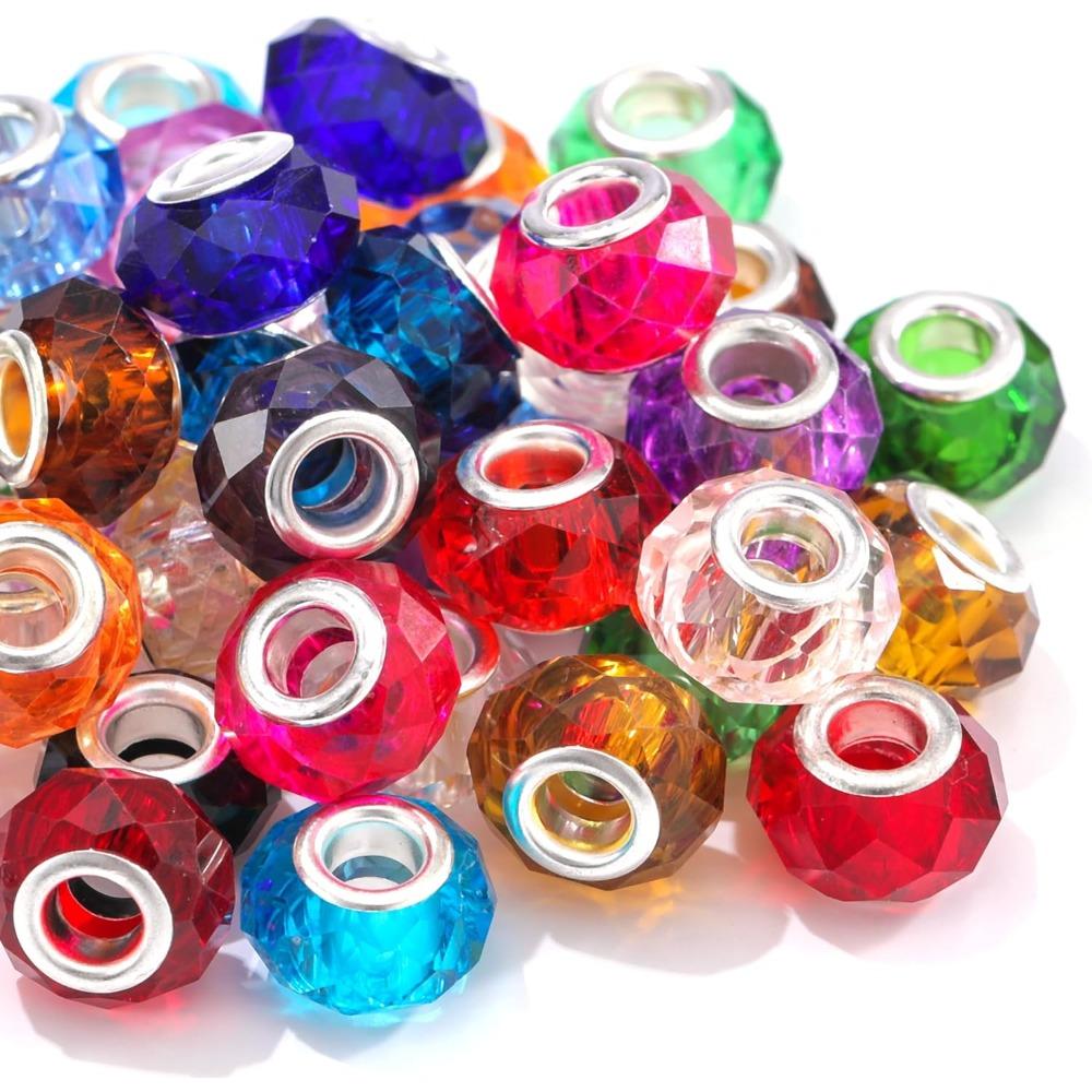 20/50/100 шт. бусины с отверстиями, граненые европейские бусины-разделители, бусины-шармы с посеребренным покрытием