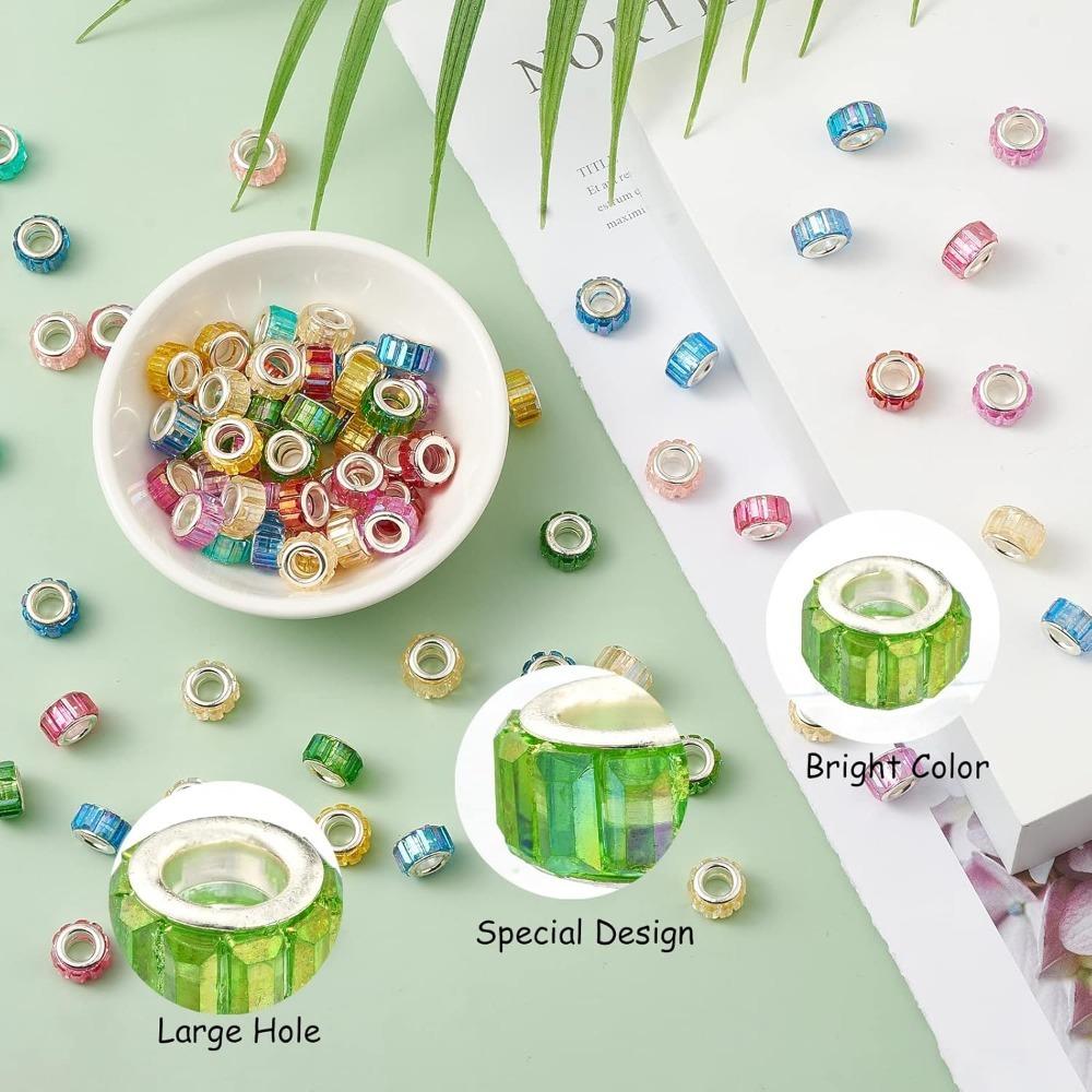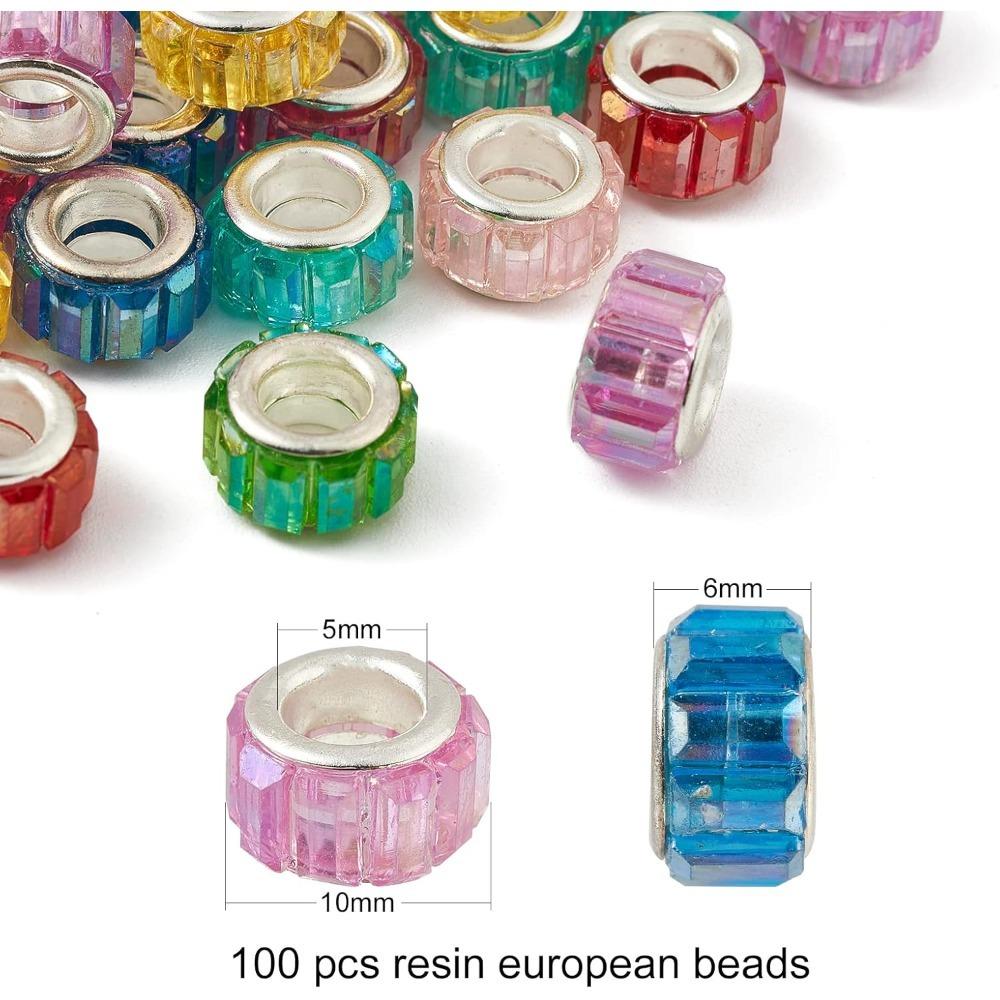 10/25/50 шт. случайных смешанных цветов прозрачные граненые смоляные европейские бусины с большими отверстиями для изготовления ювелирных изделий, ожерелий, браслетов