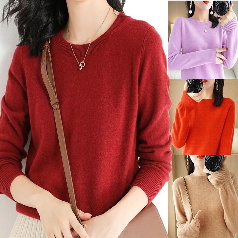 Классический модный стиль кашемировый пуловер женский шерстяной свитер с круглым вырезом и длинным рукавом трикотаж мягкий теплый базовый свитер одежда топы