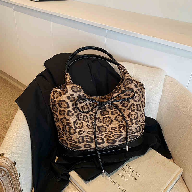 Женская винтажная сумка подмышкой с леопардовым принтом, новые универсальные сумки через плечо большой вместимости для поездок на работу, осенние сумки для женщин
