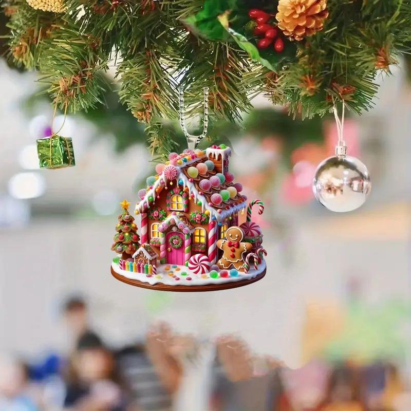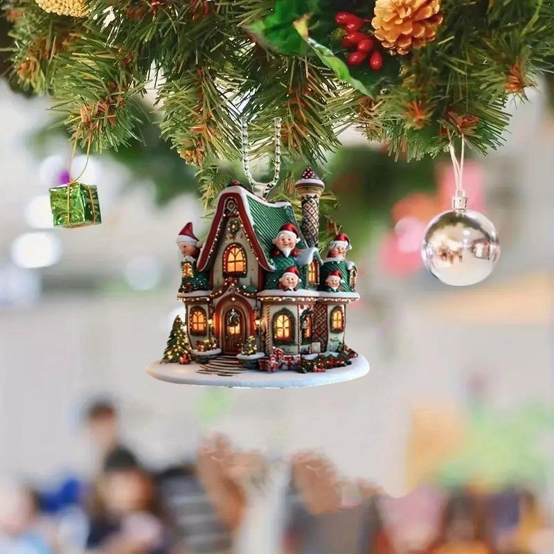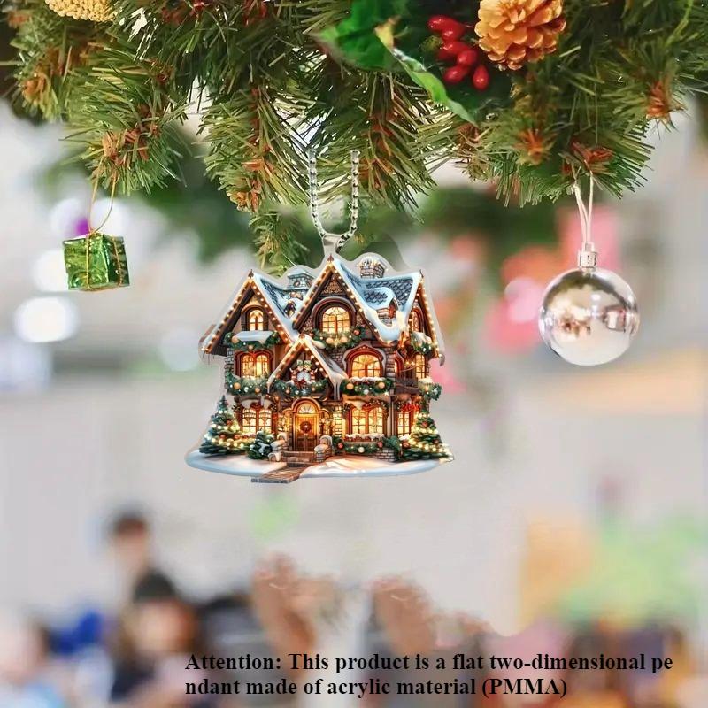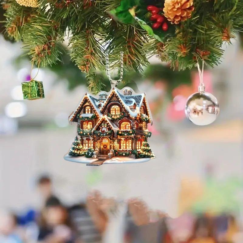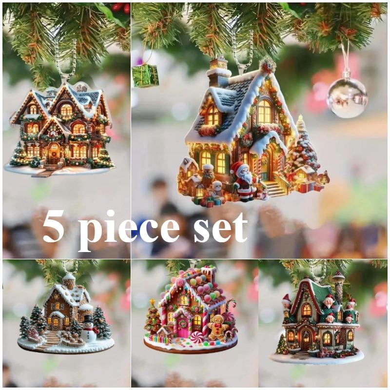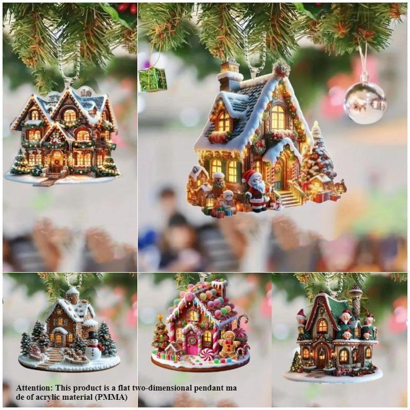 1 шт/5 шт новый акриловый плоский 2D рождественский домик цветочный рождественская елка подвеска украшение для дома подвеска для зеркала заднего вида автомобиля брелок подвеска