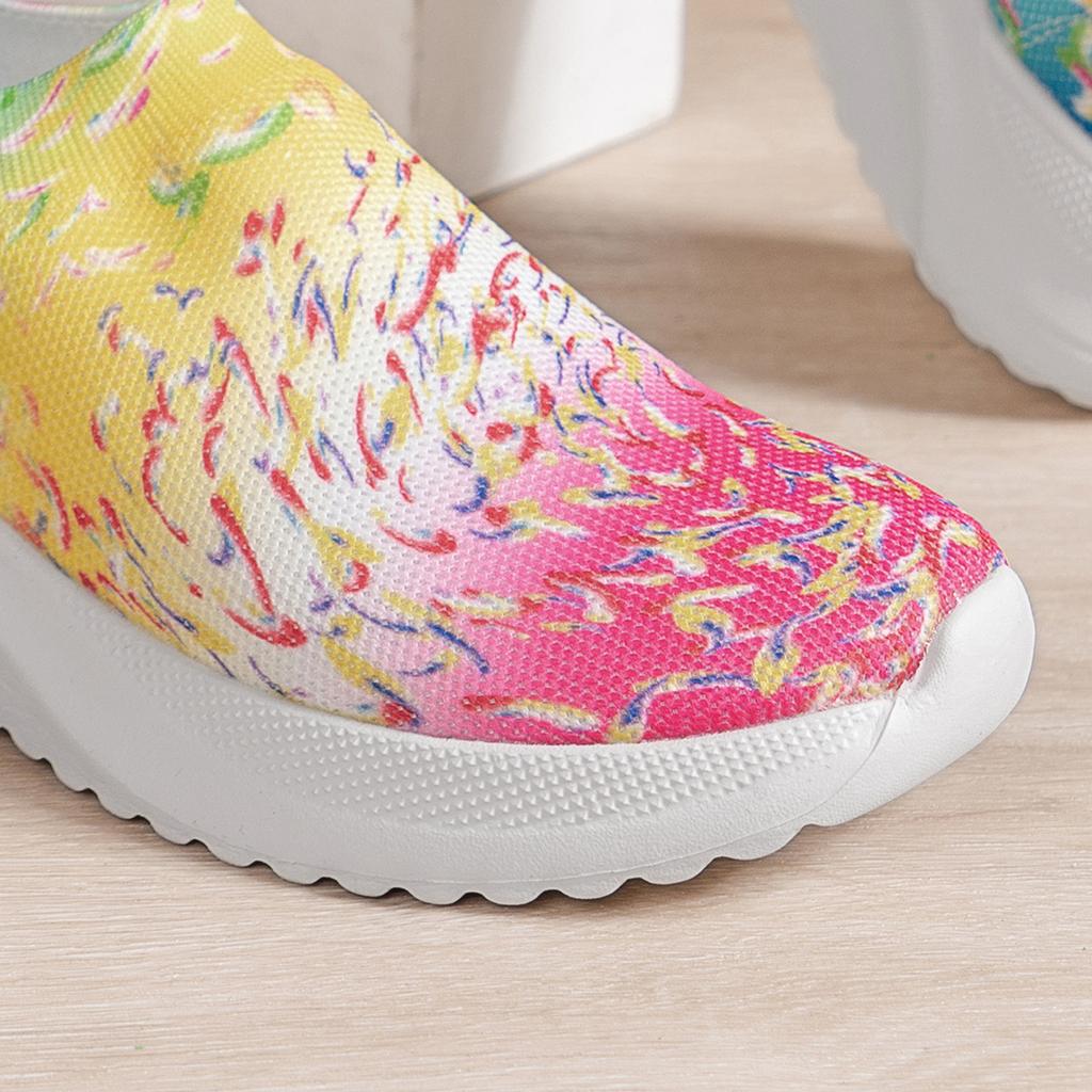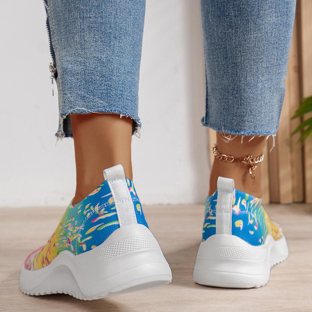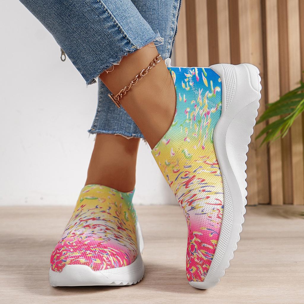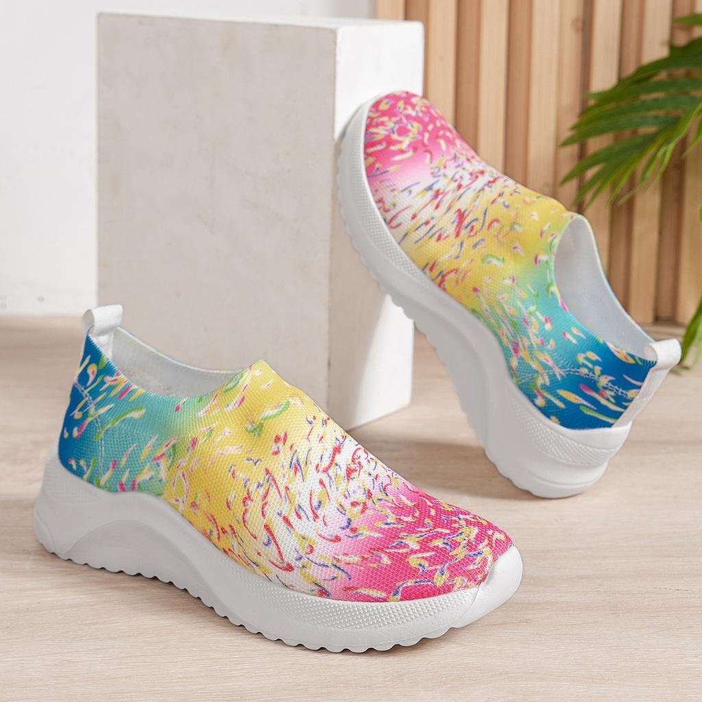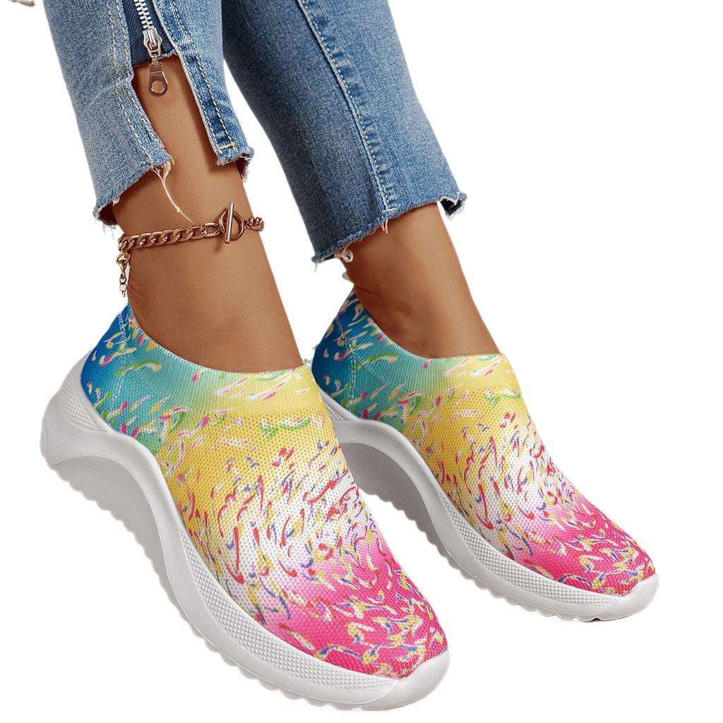 Большие размеры женские вязаные кроссовки осень новые бохо дышащие сетчатые повседневные туфли женские легкие прогулочные туфли без застежек