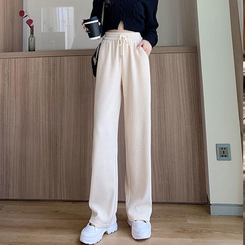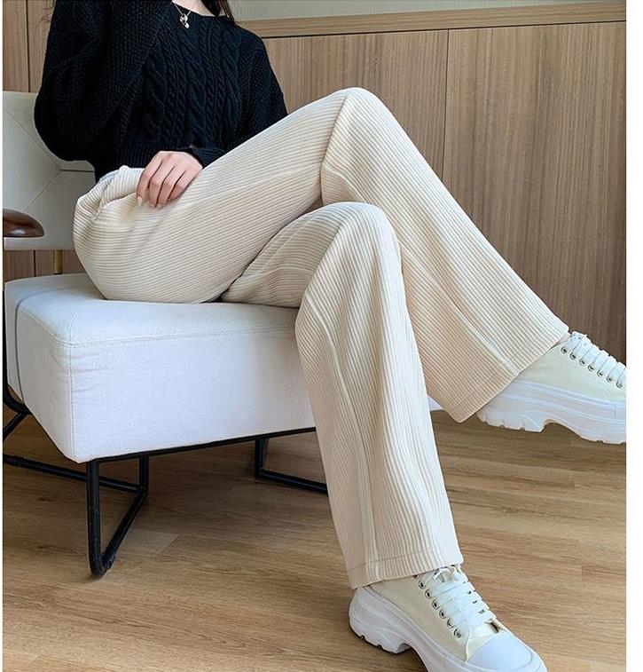 Осень и зима 2024 года, широкие брюки, женские, новые, свободные, с высокой талией, прямые, вельветовые, длинные брюки, повседневные, однотонные брюки больших размеров 2027 года
