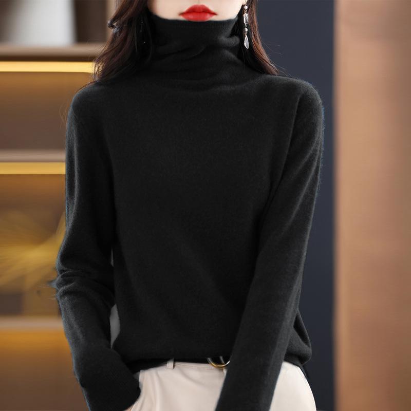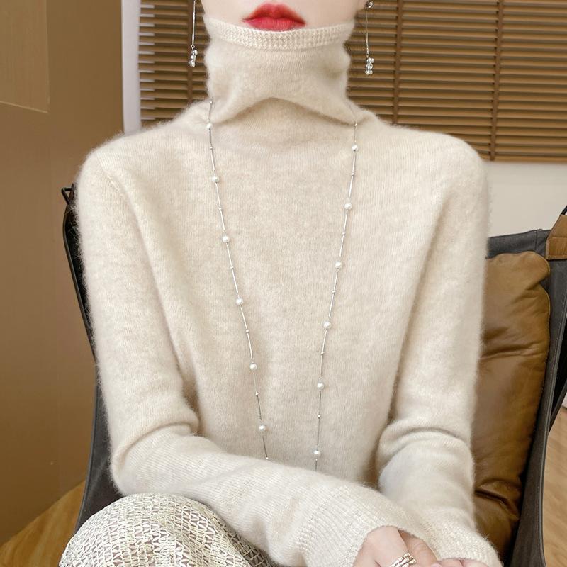 Женский свитер из норки с высоким воротником, женский пуловер из кашемира, осенне-зимний вязаный свитер, свободный низ, модный базовый топ