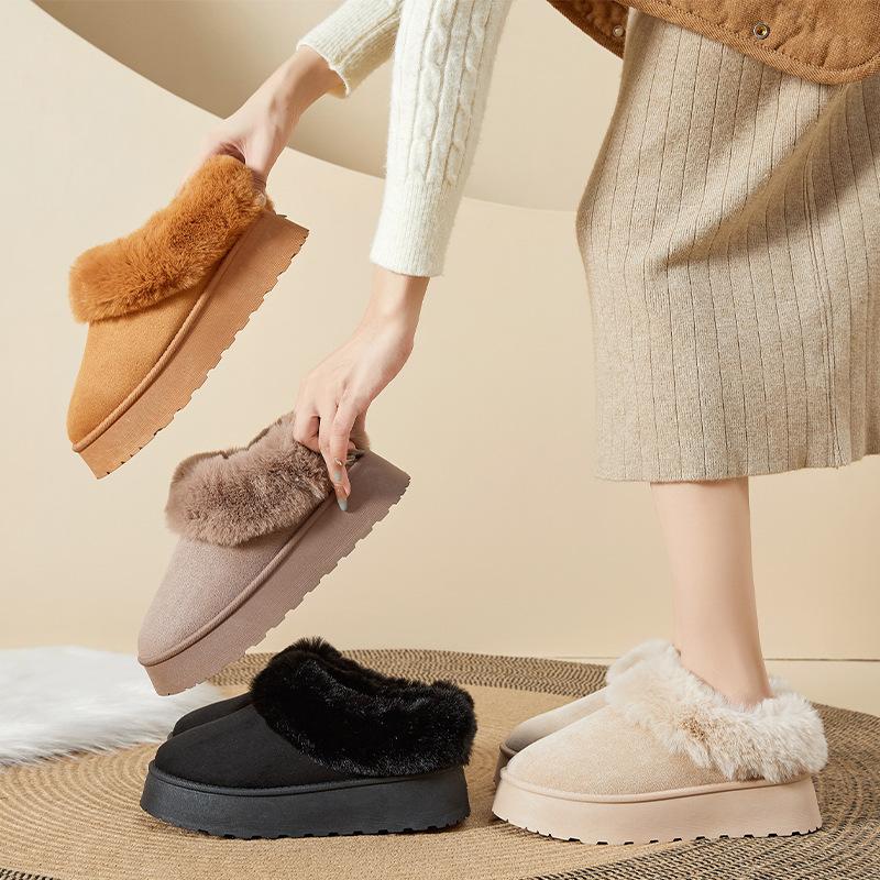 【Тапочки на платформе】 Женские тапочки на платформе изготовлены из дышащей искусственной замши, имеют теплый воротник из мягкой овчины и подкладку из искусственного меха, пушистые, уютные и теплые.. Меховой воротник лучше сохраняет температуру, обеспечивая тепло и комфорт в течение всего дня.. Мягкие воротники из овчины могут сминаться во время длительной транспортировки, расчешите их небольшой щеткой или расческой, чтобы получить гладкий и пушистый меховой воротник.