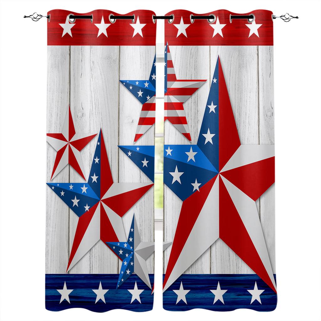 День Независимости Деревянные Зернистые Пятиконечные Звезды Блэкаут Шторы Для Кухни Спальни Детской Комнаты Оформление Окна Шторы для Гостиной